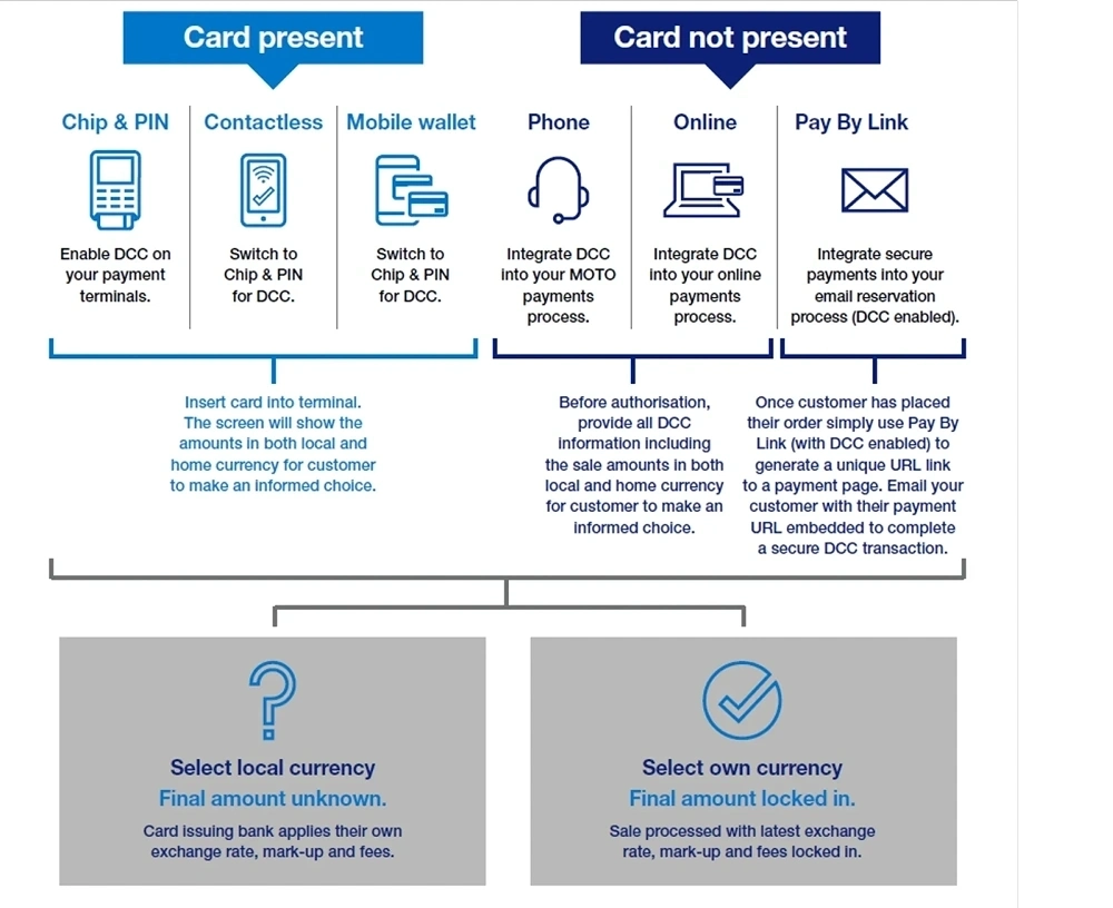 Declining DCC means the cardholder’s bank will convert the transaction at a later date using its exchange rate, plus commission and any other charges. The cardholder may not know this final amount until they see their statement.